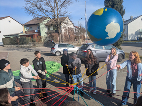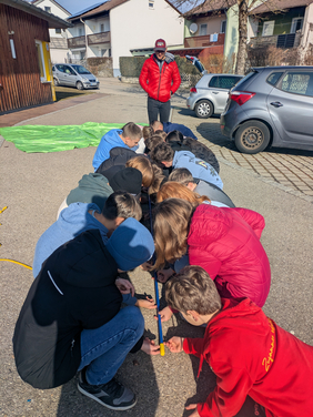Ein echtes Highlight war die Erlebnispädagogik. Durch tolle Spiele sind wir als Klasse noch enger zusammengewachsen. Besonders knifflig war die Aufgabe, eine Murmel nur mithilfe von Kabelkanälen über eine weite Strecke zu befördern. Das hat nur geklappt, weil wir alle super Hand in Hand gearbeitet haben! Genauso haben wir es geschafft, die ganze Welt zu transportieren!