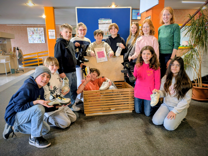 Deshalb ist das BBZ nun Teil der Initiative „Shuuz“ - in Kooperation mit der Kolping Recycling GmbH. Aussortierte aber noch tragfähige Schuhe können in der Schule in eine Box getan und gespendet werden. Für alle gesammelten Schuhe erhält die Schule eine Vergütung, die dann in neue Bücher für die Schülerbibliothek investiert werden soll. So schonen wir nicht nur unsere Umwelt, sondern engagieren uns auch für die Leseförderung unserer Schüler.